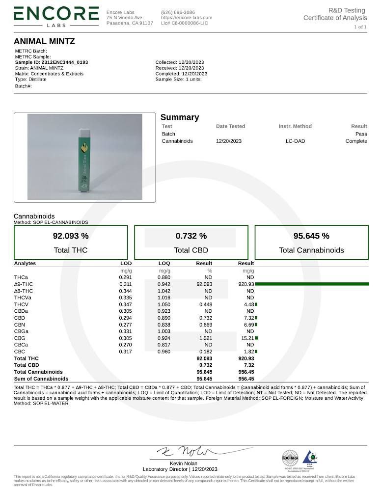 The Lit Sticks Animal Mints Disposable is a cross between Fire OG x animal cookie x thin mint cookie, resulting in a strain with mint and herbal flavors, accompanied by relaxed, happy, and uplifted effects and a mixture of cannabis flower, cannabis concentrate and terpenes. The terpenes found in Lit Stick Animal Mints 2g are to add Mycrene, Limonene, Linalool, Terpinolene, and Caryophyllene, which are famous for their insomnia, arthritis, and pain relieving features.
